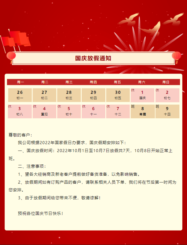 盛世华诞 举国同庆|2022年8188www威尼斯放假通知