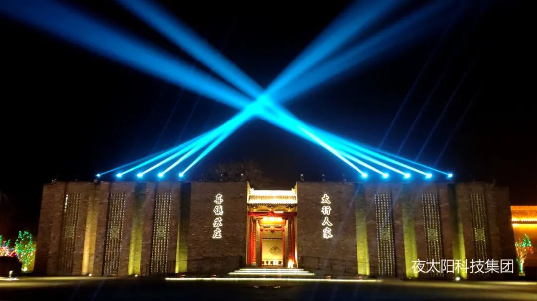 提前勘查投影位,重点展示喜镇建筑的美感,同时又利用上下光束灯形成光交互,让夜环境明暗有序,主次分明,使原本蒙灰的古建重新焕发生机!